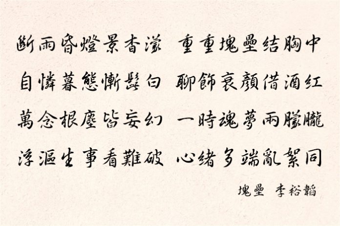 Sign in Welcome! Log into your account your username your password Forgot your password? Get help Password recovery Recover your password your email A password will be e-mailed to you. Home詩情畫意香港詩選塊壘 Related Posts Architecture Inspiration in the City 葉 彥廷 - Read more Architecture Architectural Photography 葉 彥廷 - Read more Architecture British Modern Buildings 葉 彥廷 - Read more Architecture Playing with Perception 葉 彥廷 - Read more Architecture Launching a New Space 葉 彥廷 - Read more Featured Artist Kaleb BlackPainterKaleb started this adventure 7 years ago, when there was no real voice protecting the environment. His masterpieces promote saving the Earth. InstagramTwitterYoutube 塊壘 FacebookTwitterPinterestWhatsApp 斷雨昏燈景杳濛,重重塊壘結胸中。 自憐暮態慚髭白,聊飾衰顏借酒紅。 萬念根塵皆妄幻,一時魂夢兩朦朧。 浮漚生事看難破,心緒多端亂絮同。 (李裕韜) Previous article再疊前韻題曾慶羣女史畫册 葉 彥廷 FacebookInstagramTwitterYoutube Latest Posts Architecture Inspiration in the City 葉 彥廷 - 2024-04-09 Read more Architecture Architectural Photography 葉 彥廷 - 2024-04-09 Read more Architecture British Modern Buildings 葉 彥廷 - 2024-04-09 Read more