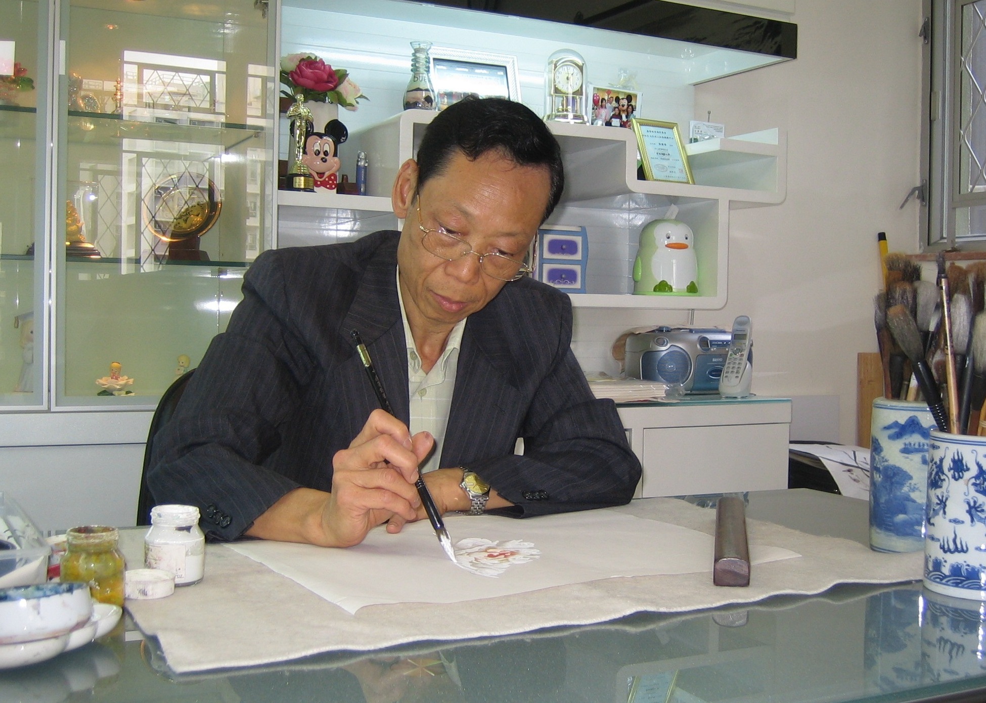 藝洺論藝藝術評論 梁國華 By 葉 彥廷 - 2018-06-19 0 396 FacebookTwitterPinterestWhatsApp 梁國華、屈文灝師徒二人擬於十月在文化中心舉展,今午邀我相晤葵興。梁之書畫早歳得自當代諸名家法乳,造詣不凡,文圖曾在拙作《藝海觀瀾》評論集佔有一頁,是當下嶺南畫派甚有實力的一員。近年行走加國、香港之間,作畫課徒甚有聲色,是去年「藝洺論藝」所推二十二畫家之一。欣賞梁師拔擢後進,培植新人之胸襟。畫不在多在有情,藝不計繁貴於精。期待師徒有新作、佳作炫藝林。附圖攝於2007年,梁國華在他沙田畫室繪寫牡丹圖。
