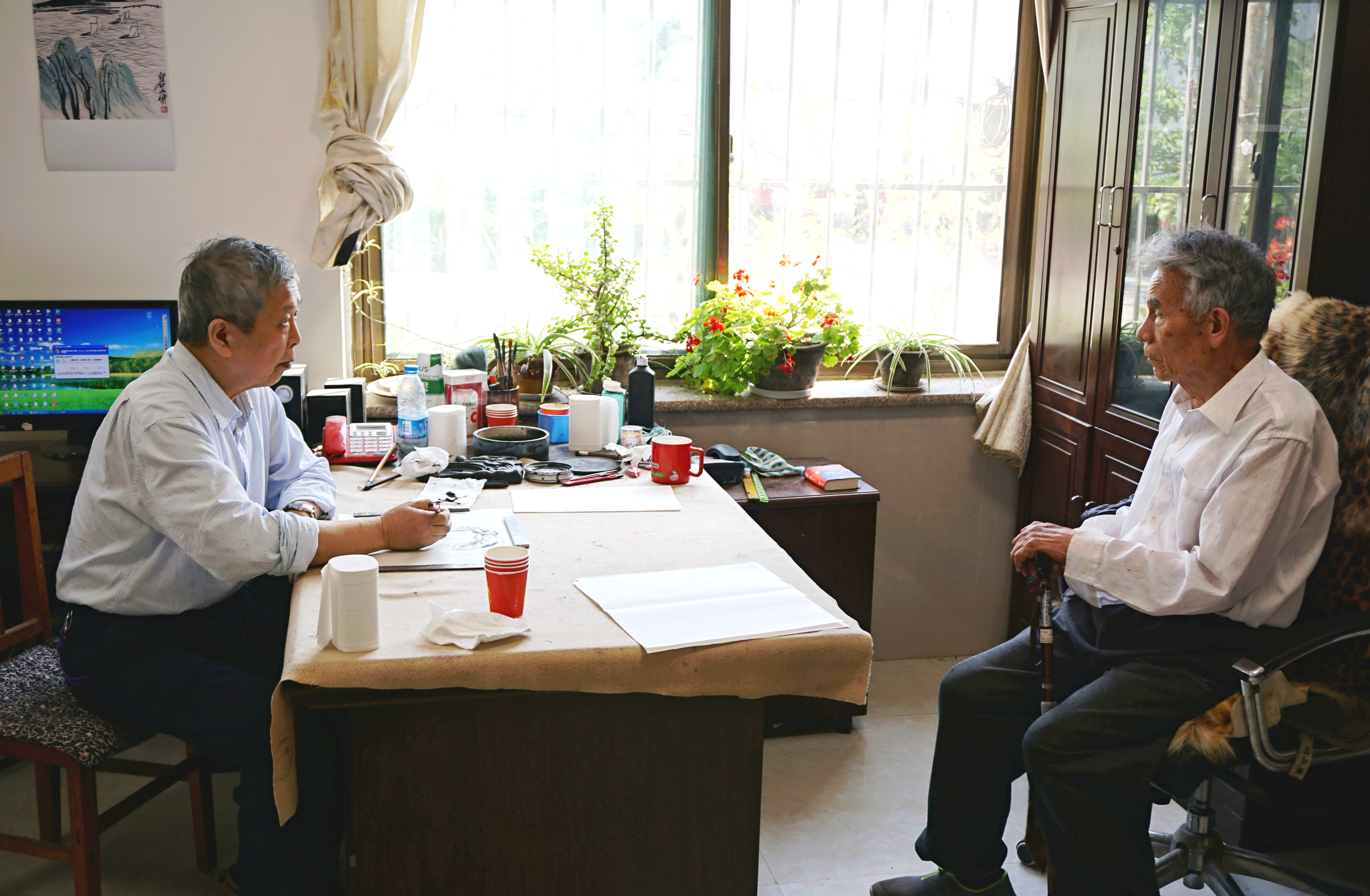 戊戌四月中,北上河北諸城採風十日。其一,在天津拜訪著名作家,原天津作家協會刊物《天津文學》,又名《新港》主編劉品青先生。六十年代,我主要從事版畫創作,皆是由生活中選材寫生之有感之作,其中許多木刻作品都是首先在他的刊物發表,數量在十幅左右。所以說他是我藝術生涯中的伯樂。當日,在他的書齋裡我們斷斷續續傾談了七個多小時,主要是聽他回憶四十載相交舊事和文壇軼事,也首次披露了辦刊心得和處世待人之道,令我頓悟且受益甚深。